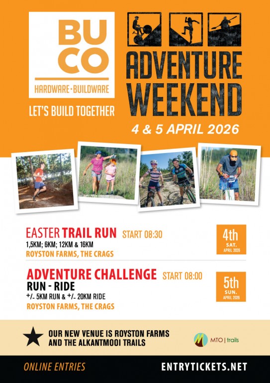 BUCO Royston Farms Trail Run- 16km -Seniors R220.00 . Juniors 150 U16