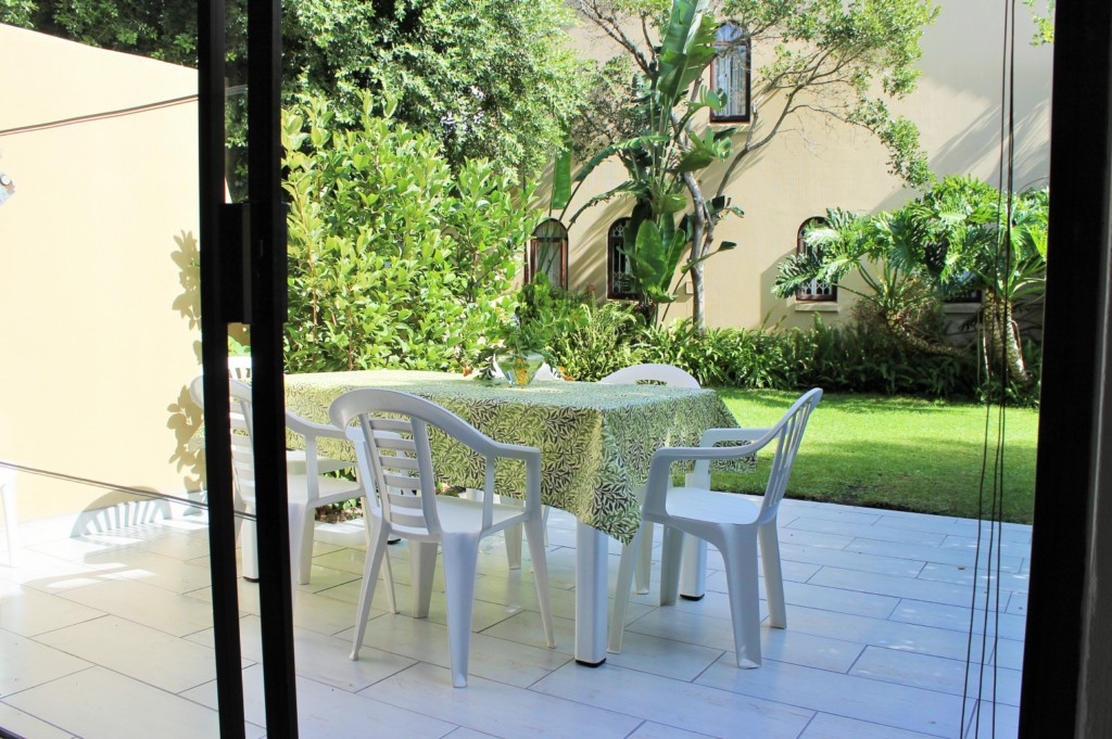 - Exterior (front) of complex is not enclosed/fenced-in. Back of unit opens directly into communal gardens