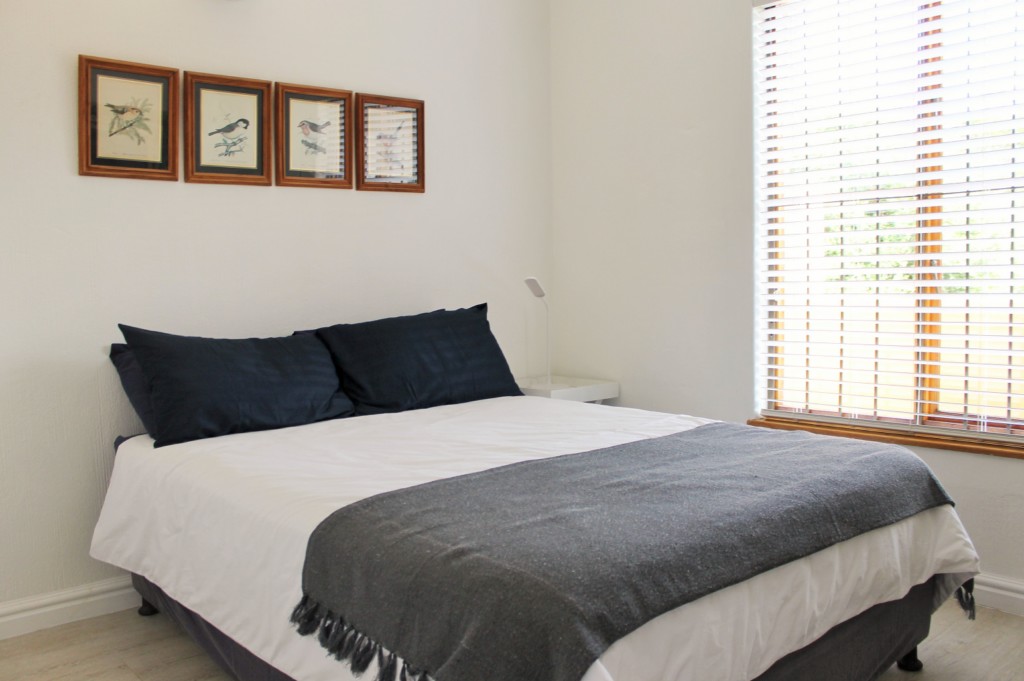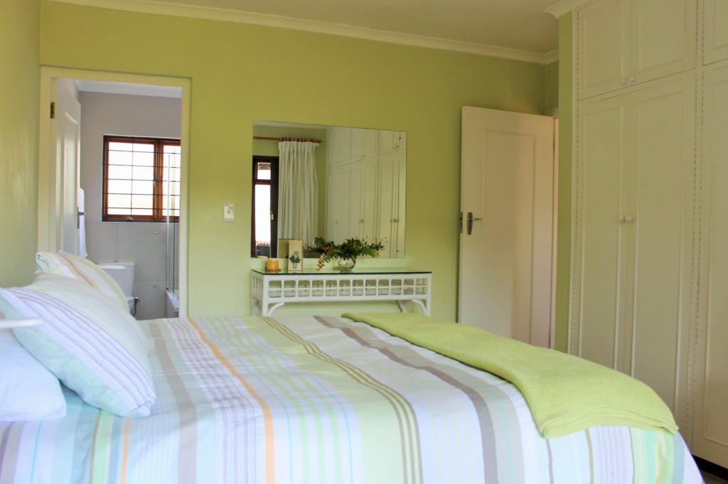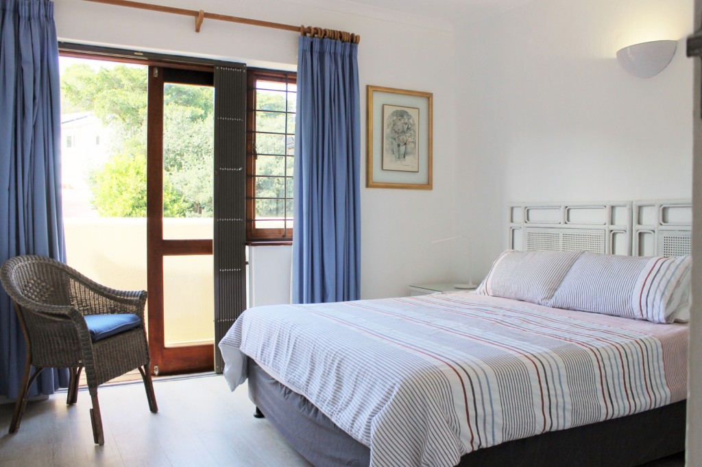 BEDROOM 4: Queen en suite (bath with overhead shower/toilet), opening onto balcony overlooking communal gardens.