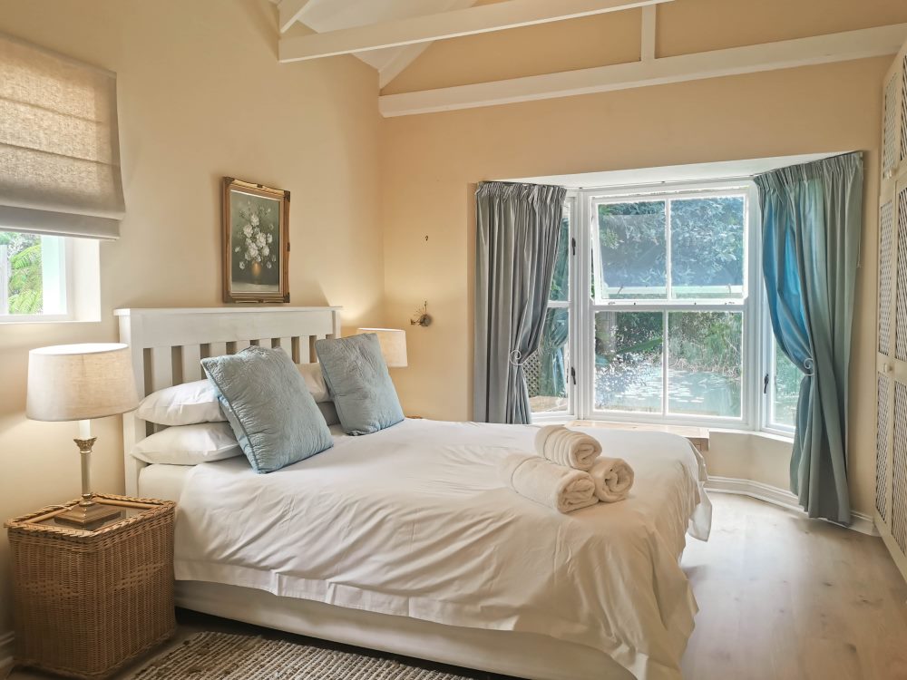 BEDROOM 1 (D/S): Queen en suite (bath/toilet), opening onto patio, overlooking pond.