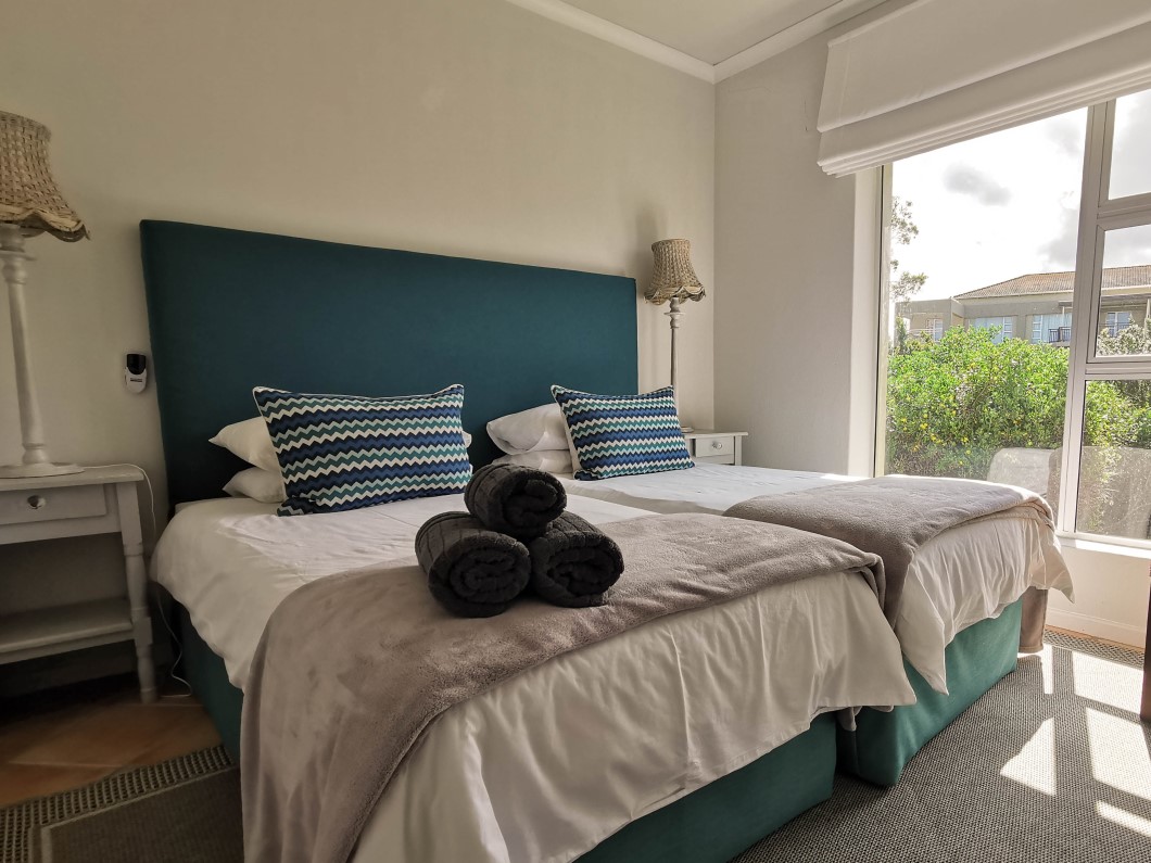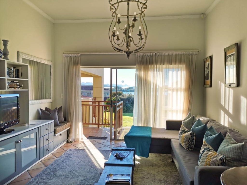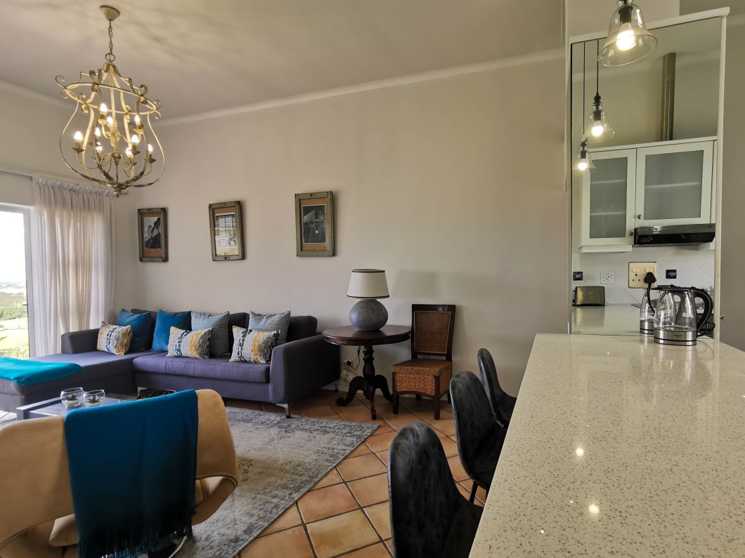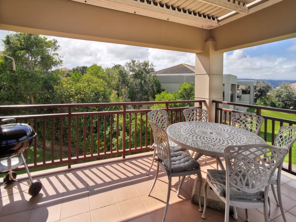 Contemporary UPSTAIRS apartment in the popular 18-hole Gary Player golf course, just 3km from Plett town. Apartment offers open plan living area comprised of lounge & kitchen with nook, opening onto cover balcony with braai facilities, enjoying sea & lagoon views.