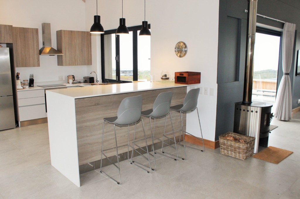 UPPER level (bedroom #5) is an open-plan studio with kitchenette, wood-fire place and Smart TV (DStv & Netflix - own login)