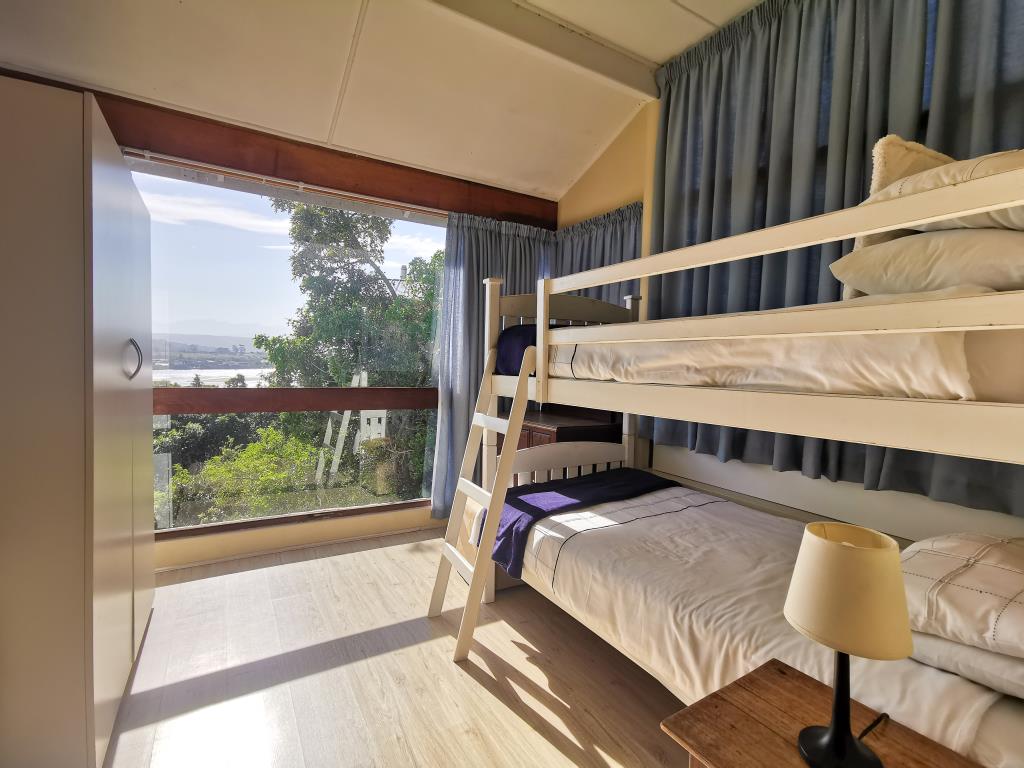 BEDROOM 1 (Upstairs): Sunny Bedroom with views, fitted with bunk bed.