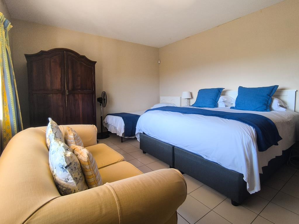 OUTSIDE FLATLET: Queen size bed and 1 single bed, ensuite (shower/toilet)