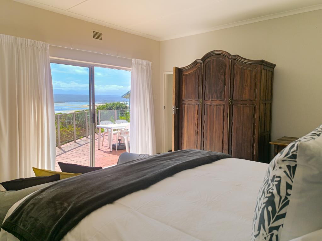 BEDROOM 2 (Upstairs): King size bed, opening onto balcony with views.