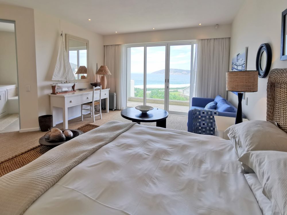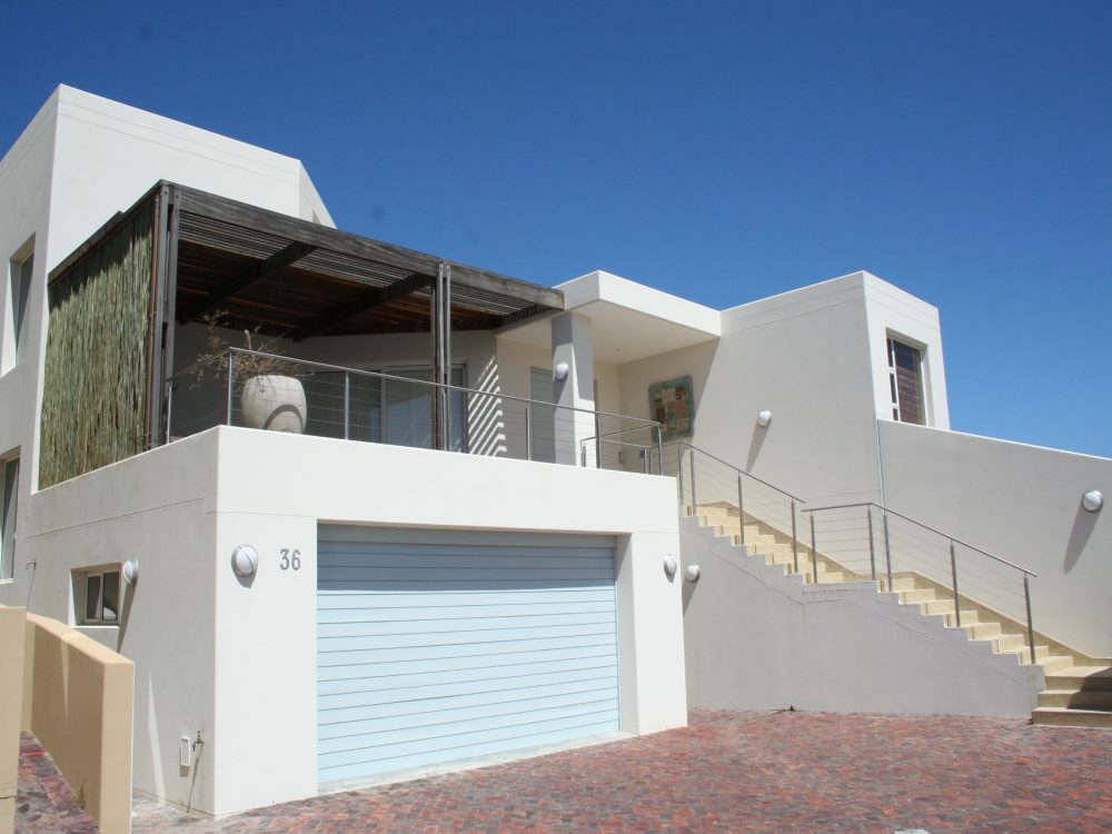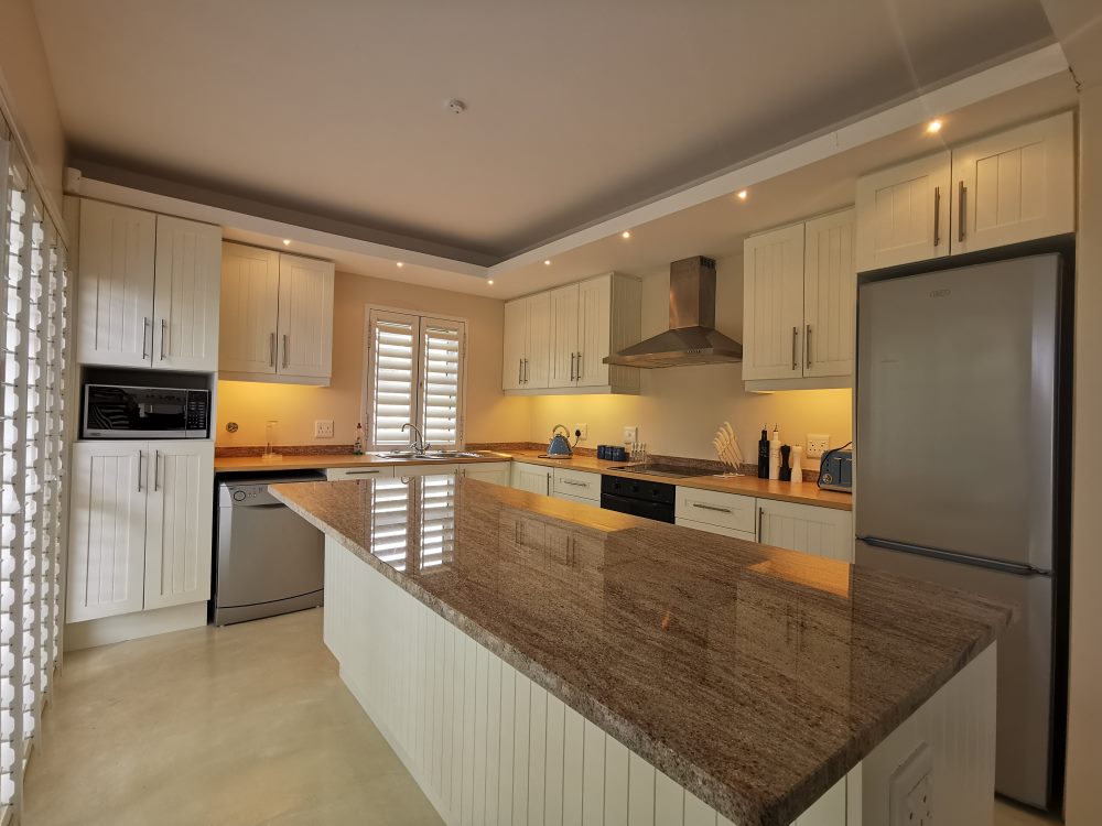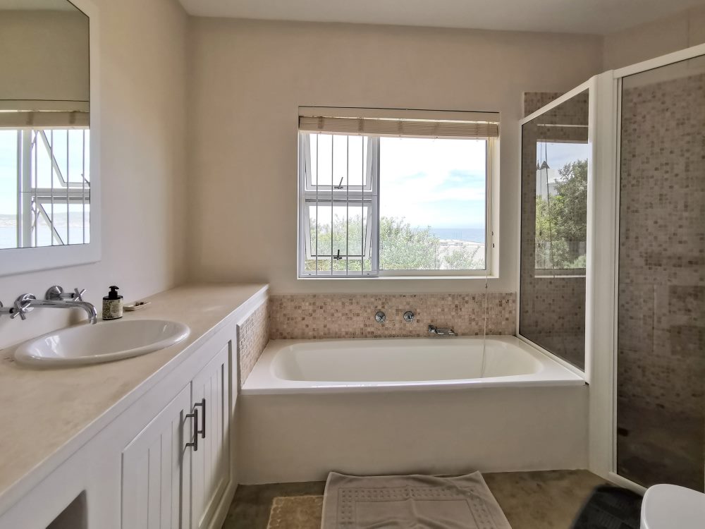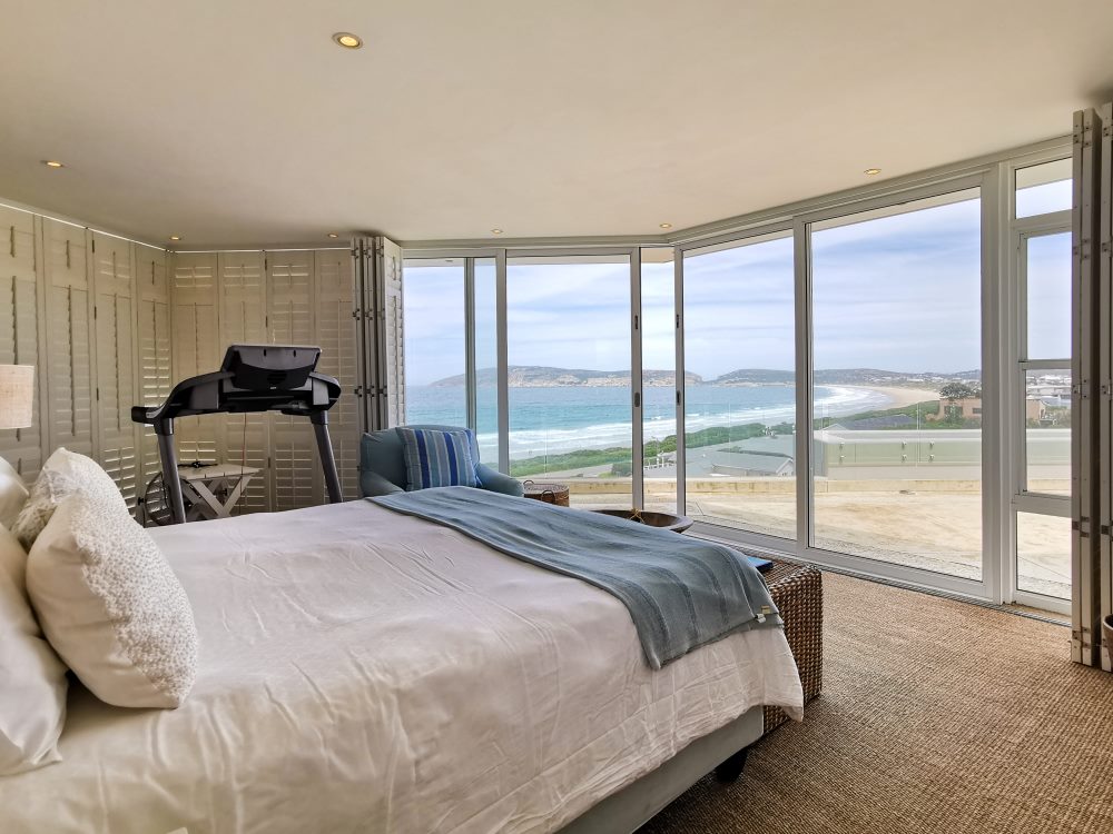 Middle level offers large living area with lounge fitted with wood fire-place, kitchen and dining spaces including the 4th en suite bedroom with separate guest toilet. Living area opens onto 2 separate patio areas, the front overlooking the ocean and Robberg Nature Reserve and fitted with built-in braai.