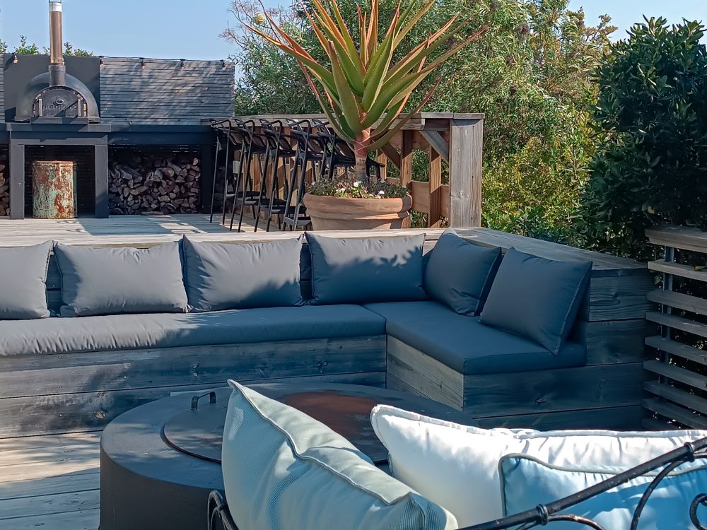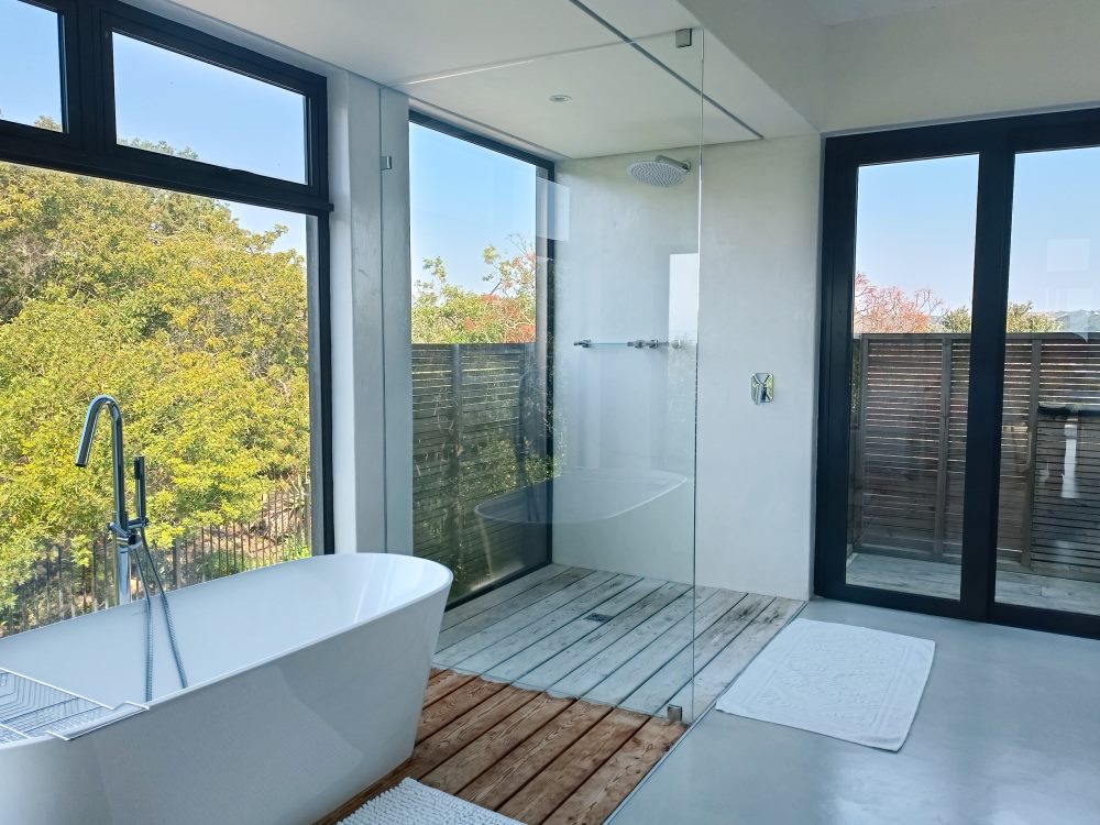 Fenced-in lavish 2-level house with impeccable union of modern and rustic style blended together using natural materials creating a stylish space with every creature comfort making for a dream vacation. Downstairs houses 4 en suite bedrooms with spacious TV lounge opening onto deck with authentic wood pizza oven ideal for gathering family and friends for handmade pizza making as well as "al forno" cooking. Deck flows into manicured garden with rim-flow pool featuring loungers and swing chairs lending to pure relaxation. Upstairs section comprises the generous main living area with TV lounge, dining space and kitchen with scullery, flowing out onto sun-drenched deck furnished for exquisite outdoor dining and entertainment.