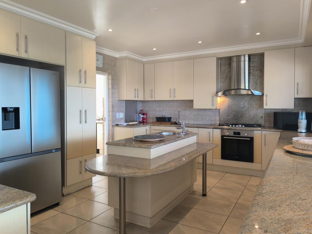 The heart of this home is on the middle level, featuring a spacious kitchen, separate scullery, and laundry adjoining the double garage. The lounge and a 10-seater dining area opens onto an outdoor entertainment patio with stunning views. Enjoy year-round outside living with a covered dining and lounge space, complete with a gas grill and wood burn braai. The idyllic setting for gatherings and al fresco moments