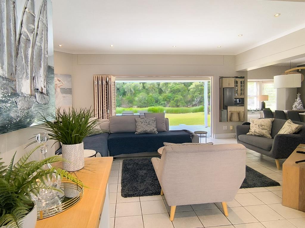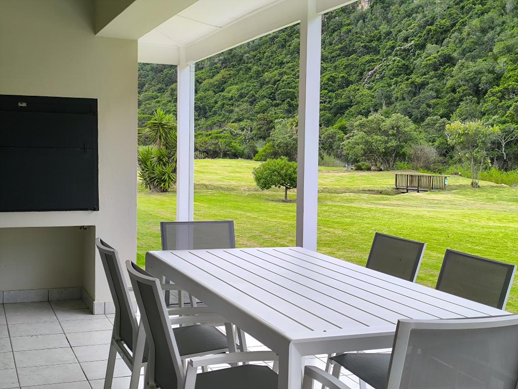 French doors lead to a covered patio with a built-in braai, inviting you to step down onto the manicured communal lawns and soak in the tranquil views of the Pissang River - perfect blend of comfort and serenity.