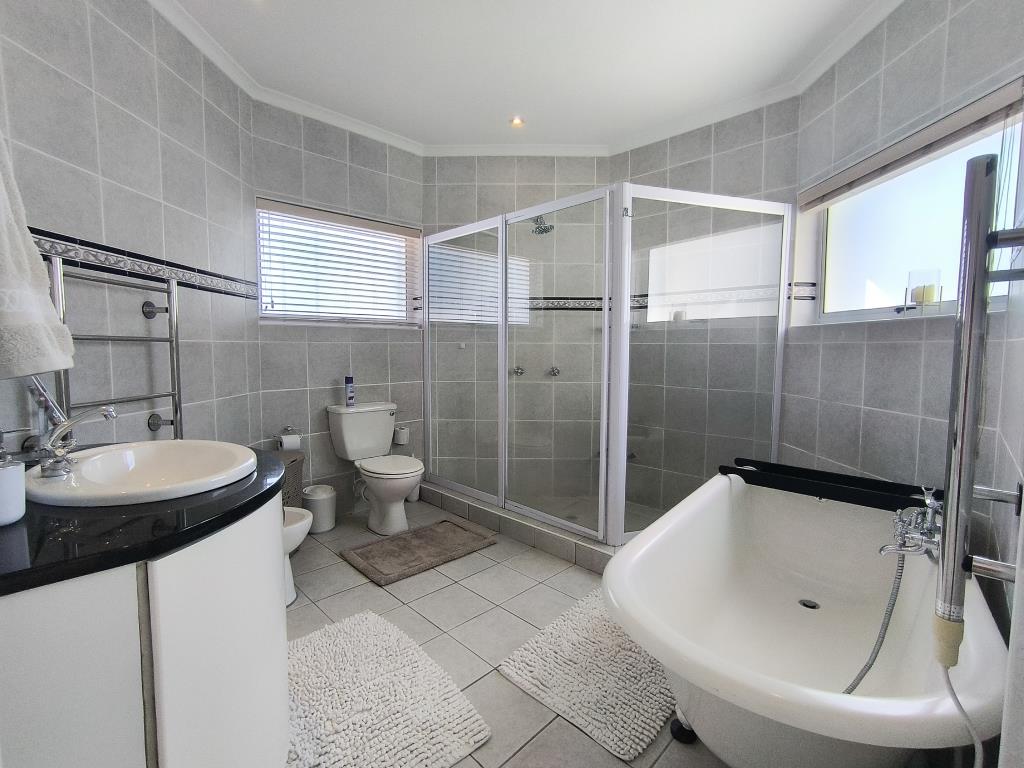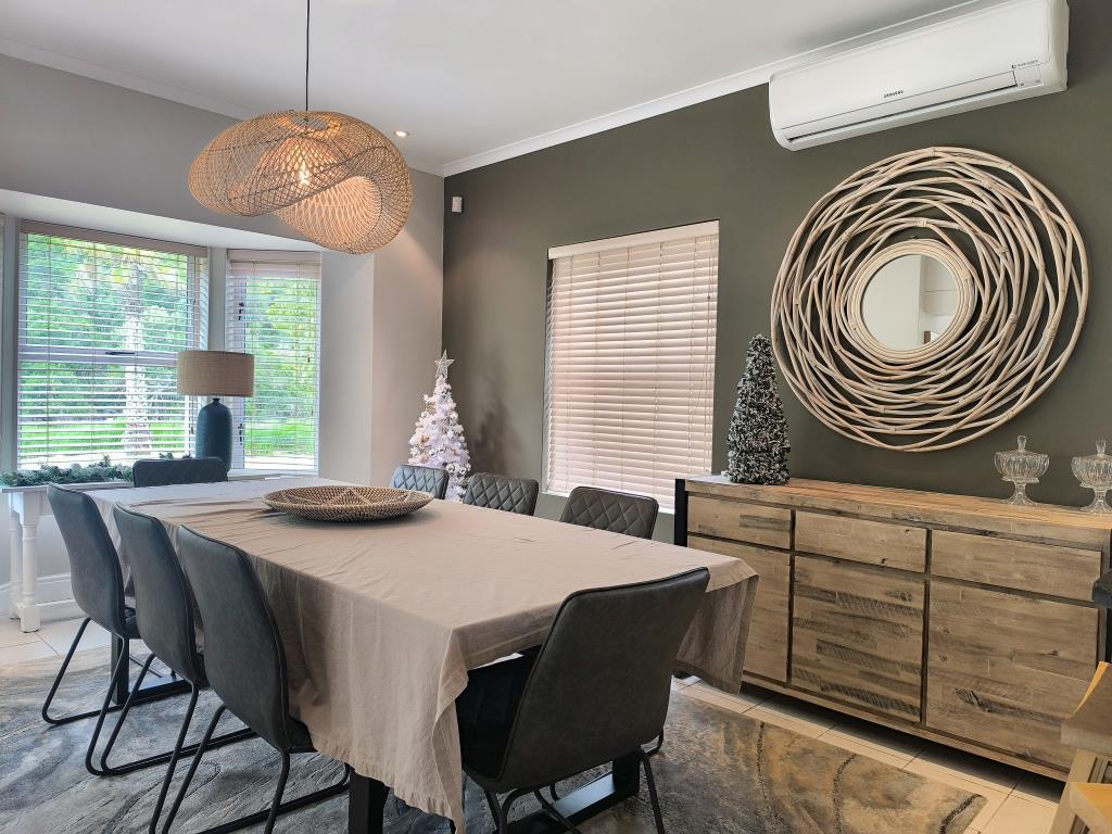 The ground floor boasts an open-concept living area with fireplace, seamlessly blending the lounge, kitchen with separate scullery, and dining area that comfortably seats eight. A dedicated home office provides a private workspace.