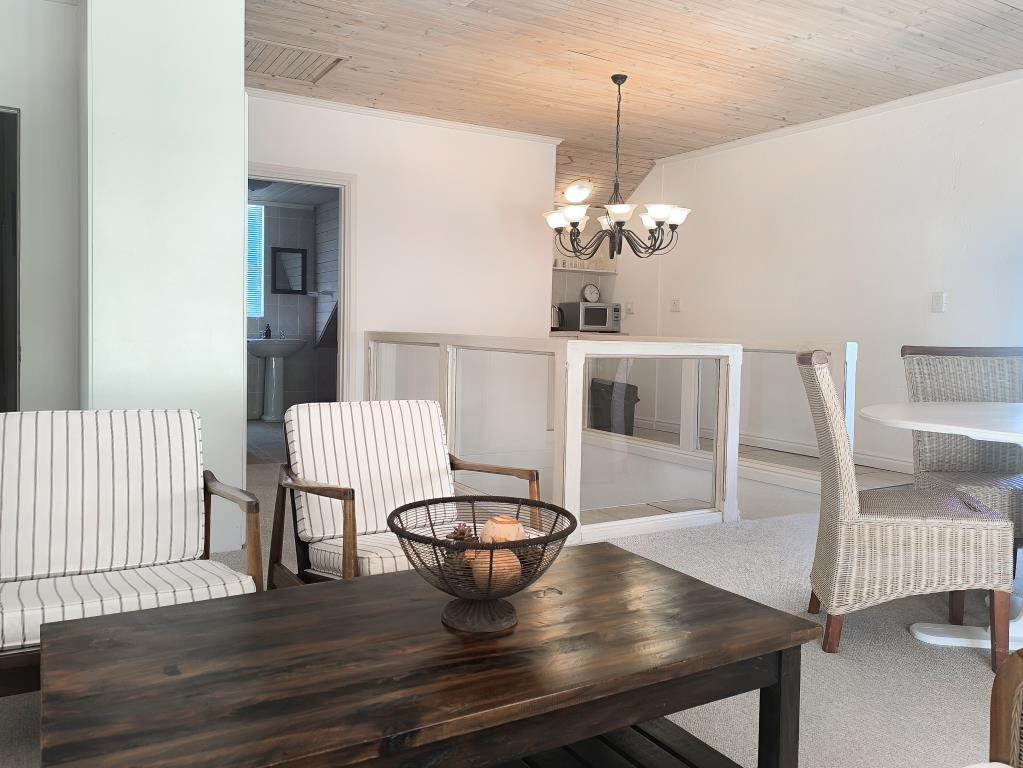This double-story home, nestled in a quiet cul-de-sac of the sought-after River Club complex, offers riverfront proximity. The ground floor features an open-plan living area with a kitchen, dining space, and lounge that flows onto a covered patio with a built-in braai and outdoor dining area. Upstairs, youll find a versatile loft area with a bedroom, bathroom, and kitchenette.