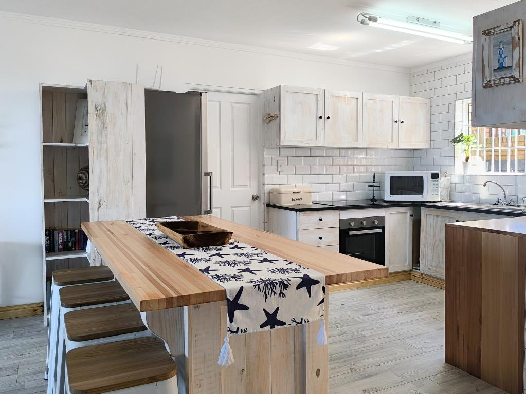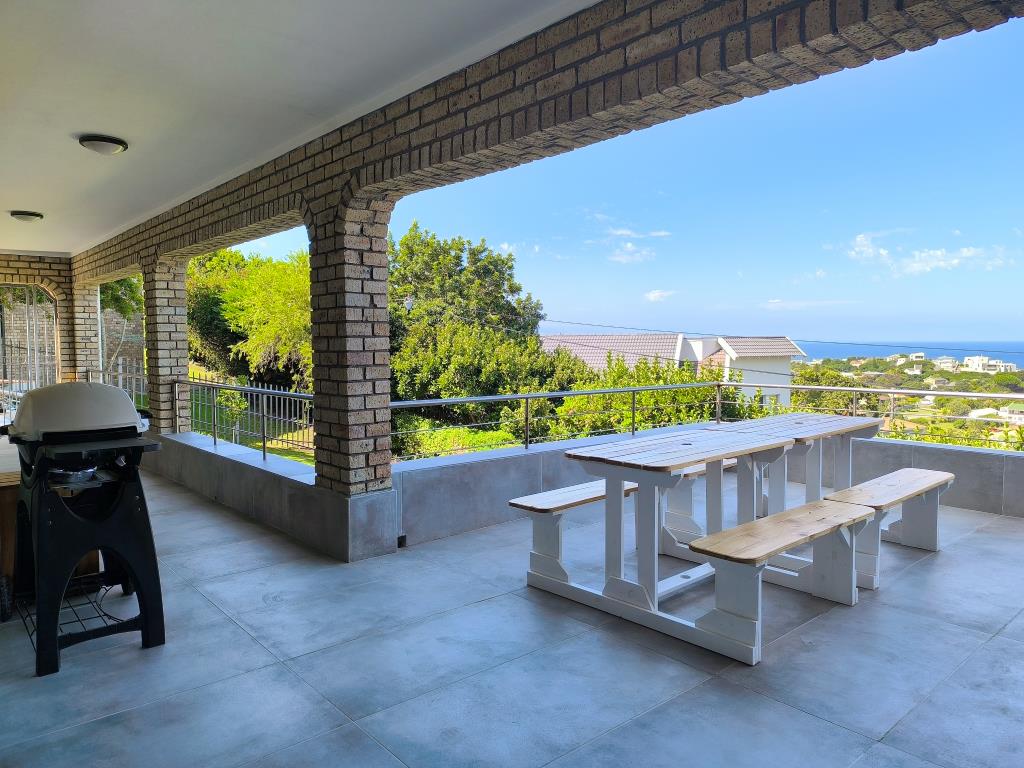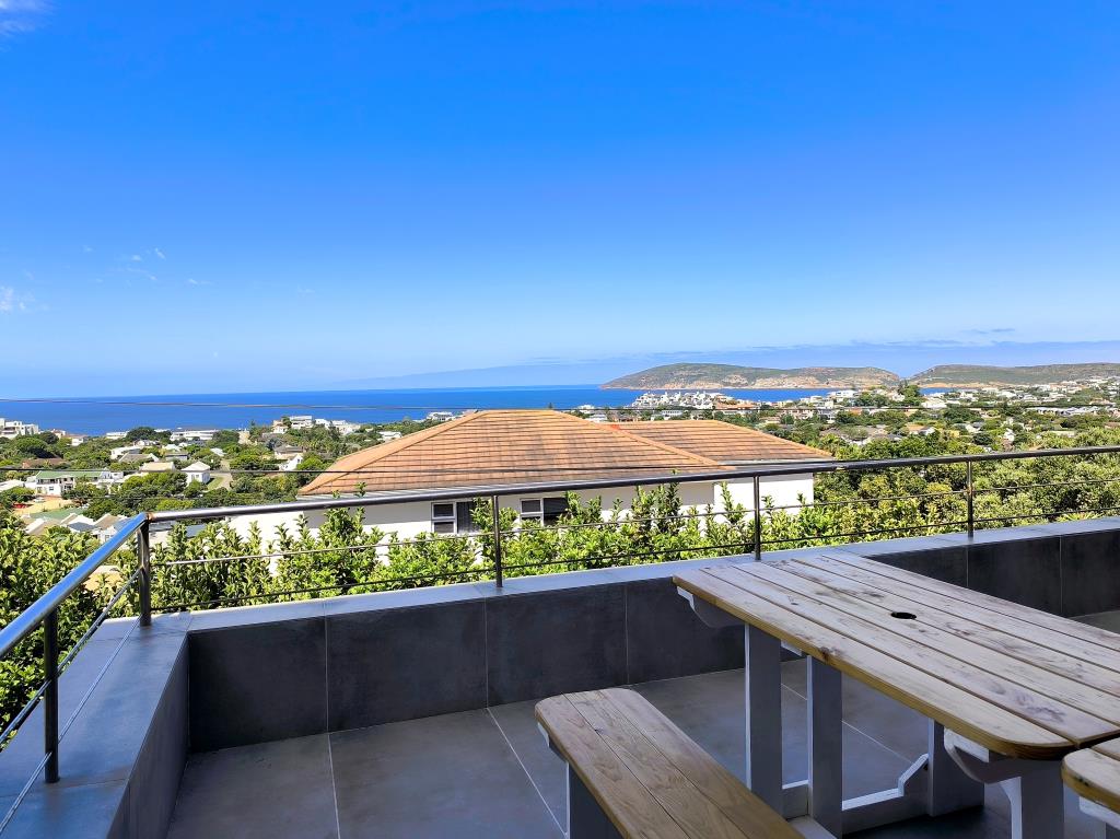 Enjoy stunning Robberg and sea views from the open-plan living area, featuring a well-equipped kitchen with a versatile dining island, a comfortable lounge with smart TV, and a spacious patio with outdoor dining and a grill. Panoramic views stretch from Robberg to the Tsitsikamma mountains.
