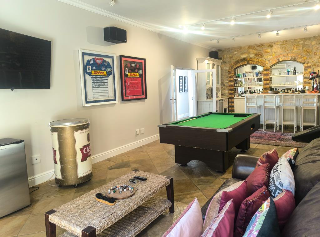 Downstairs, the fun continues with a dedicated games room and bar, featuring a big-screen TV, a pool table, dart board, and a selection of board games. The adjacent, relaxed TV lounge opens directly onto the sunny pool deck and garden, where guests can enjoy a game of table tennis, lounge in the sun by the pool, or unwind in the jacuzzi. For those who want to stay active, this floor also houses a fully equipped private gym. The four remaining air conditioned bedrooms are also located on this floor, providing ample space and privacy for everyone.